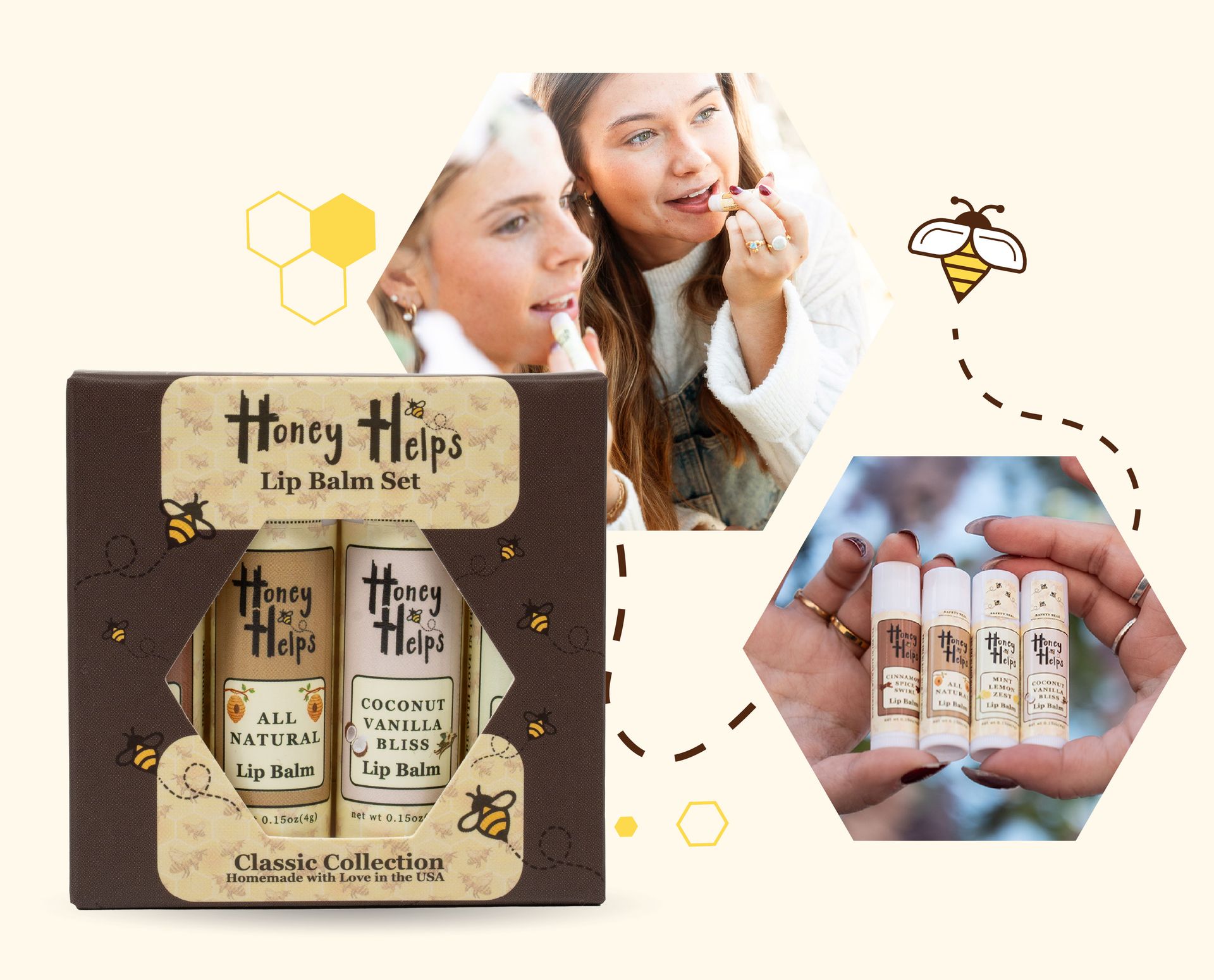 Honey contains natural alpha-hydroxy acids that gently exfoliate the delicate skin of the lips, while beeswax provides essential fatty acids and vitamins. Beeswax is also a natural humectant, meaning it draws moisture from the air and locks it into the skin to help keep it hydrated over time.